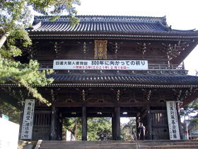 日蓮聖人像を安置する祖師堂は総欅造りの重厚な建物。弘化3年(1846)に完成。