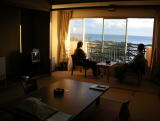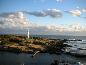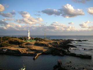 自称「温泉同好会」のおやじ3人でやってきました。部屋からの眺めが素晴らしい。日本最古の洋式灯台のひとつである野島崎灯台が目前です。 |