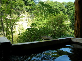 湯舟からは養老川の流れが間近に見下ろせます。 |