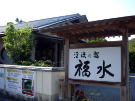 温泉街から少し離れた老川橋のたもとにある3軒のうちの1つ、渓流の宿・福水で立ち寄り湯することにしました。