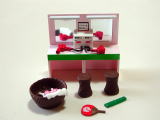 | タカラの入浴剤「昭和おもいで銭湯」の おまけ(?)のフィギュアを1セット頂い たので、ジオラマを作ってみました。 |