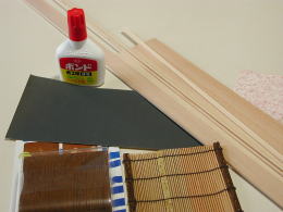 工作用角材 古い竹製のコースター 紙やすり(屋根に使用) フローリング補修テープ フロアマット 半透明の下敷き スポンジのくず(草木) ドライフラワー 他 |