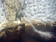 そんなわけで今回浴場内の撮影をどうするか迷いましたが、「人が近くにいるときにはカメラを出さない」「フラッシュは焚かない」と勝手にルールを作り(笑)、咎められたときのために「ミヤナムニダ(すみません). イルボネソ ワンヌンデ(日本から来たのですが)、クニャン キニョムサジン チッコ イッソッソヨ(ただ記念写真を撮っていました)」というハングルを暗記してて撮影断行。ただし、湯けむりでレンズは曇るし、フラッシュなしだと手ぶれもひどいので、カメラは早々にロッカーにしまい、存分に入浴を楽しみました。以下は貴重な(?)記念写真です。 |