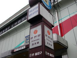 | 韓国最古の温泉地といわれる東莱(とんね)温泉を訪れました。最寄駅は地下鉄1号線のその名も「温泉場(オンチョンジャン)」駅。釜山一の繁華街、西面(ソミョン)から15分程です。 |