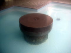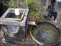 先ほどの掲示にある「上からの温水」というのがこの丸い御影石から出ている湯。