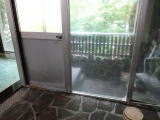 | 浴槽の右脇にアルミのドアがあって「露天風呂は故障中のため使用できません」というような張り紙がありました。覗いてみると家風呂程度の広さの浴槽が干上がっていました。もう長いこと故障中なのでしょう。 |