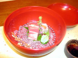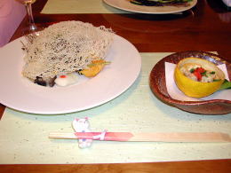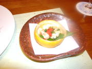 | 先付け: 柚子釜ふぐ白子 |