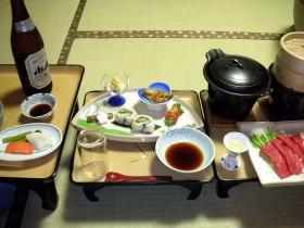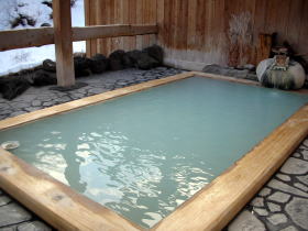 ひげの家は客室数14のこぢんまりした宿。お湯が良いのはもちろんですが、値段の割りに料理も良く、従業員の接客態度もにわか仕込みではない丁寧さが感じられて、気持ちよく過ごせる宿です。チェックアウトをする年配のご夫婦が「秘湯スタンプが10個たまったので、是非ここを(無料招待に)選びたい」と言うと、若女将が「うれしいです。是非、是非ご利用ください」と答えていました。 |