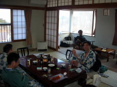 | 学生時代の仲間たちとやってきました。東北新幹線を福島駅で下車。駅からはバスで40分ほど。高湯温泉までのバスは1日3本と少なく、しかも山の登り口の某停留所(失念)から先は福島市に依頼されて走っているためとかで、一旦そこまでの運賃(550円)を払い、さらに高湯温泉で別料金(確か250円)を払うという、不可解なシステム。人数が揃えばタクシー(時間は3分の2、料金は車のサイズによって5,000円前後)をお勧めします。 |