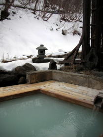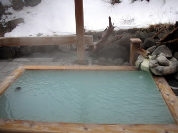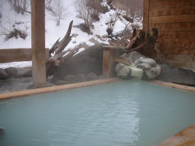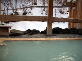 この冬は高湯も雪が少なかったそうですが、なんとか雪見風呂を味わえました。 |