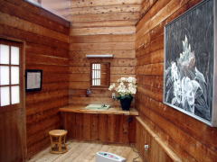 | 脱衣所も総檜造り、温かみのあるいい雰囲気です。夜7時で男女が入れ替わります。 |