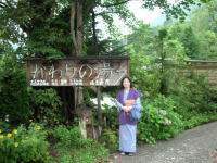 宿からは道を隔てた川沿いにあって、浴衣姿で散策気分。 |