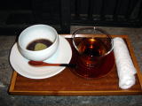 | 木箱の中にはお茶とコーヒーのセット。月見草が飾られていました。 |