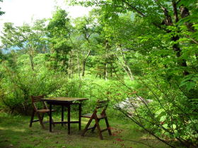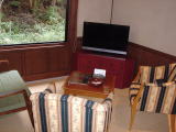| 本を読んだり、テレビを見たり・・・くつろげる部屋です。大きな窓の外には川が流れています。 |
