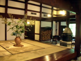 | この囲炉裏の間、実に落ち着くんです。和室そっちのけで、ほとんどの時間をここで過ごしました。 |