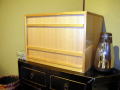 | 懐かしい収納箱。中にはお茶やコーヒーのセットが入っています。 |