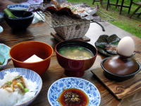朝食は8時か8時半のどちらかをチョイス。8時からなら雨が降っていなければ庭で食べることもできます。 |