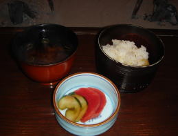 粟ごはん、赤だし |