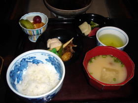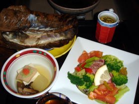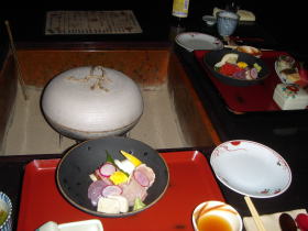囲炉裏では飛騨牛の焙烙(ほうろく)焼き・・・