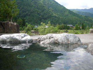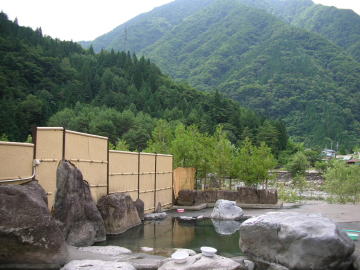 | 川の対岸も見渡せて、ものすごく開放的な露天風呂です。 |
