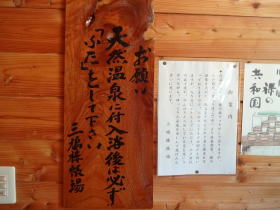 | 脱衣所も掃除が行き届いていて気持ちいい。「天然温泉に付入浴後は必ずふたをして下さい」との掲示板。「ふた」こそがここの名物です。 |