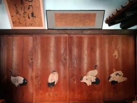やなぎ妻が帳場の奥に目敏く見つけたのが板戸に描かれた鶴の絵。近隣在住の、主に仏画を描いていた画家の手によるもので、元々は押入れ戸だったものを玄関をリフォームした際にここに持ってきたそうです。