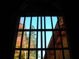 もう少し暗い浴場を想像していたのですが、大きな窓が三方にいくつもあり、とても明るく、さわやかな印象です。モダンな窓からは紅葉した木々が見えてまるでステンドグラスのよう・・・お湯といい雰囲気といい、やはり第一級の浴場です。