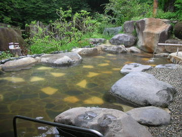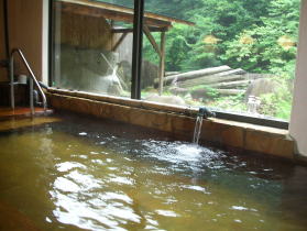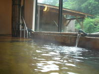 | 内湯より温めで、深さもあまりないので足を伸ばしてゆったりのんびり、長湯ができます。この湯温は夏は気持ちいいのですが、冬場はどうでしょう。 |