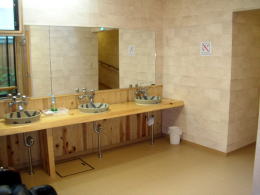 | 20人くらいは余裕で入れそうな広さ。目の前は緑、緑、緑・・・すがすがしい。 |