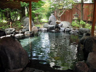 | 上の3つの浴場の他に、女性専用の「ひすいの湯」(右の写真)、源泉かけ流しの貸切風呂「鄙の湯」と「風月の湯」(ともに有料)があります。 |