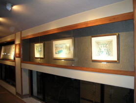 1階の通路には山下清画伯が辰巳館に残した貼り絵と水彩・マジック画の複製が展示されていますが、かなり色あせてしまっています。