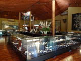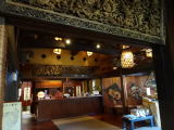 | 「本陣」の重厚な木造りの自動ドアを抜けると神社仏閣のような彫刻欄間に囲まれたロビーが現れます。「武尊乃湯」に向かう途中には古民具や鎧兜、印籠ほか様々なコレクションが展示されている「時代もの展示処」があります。 |