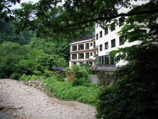 赤谷川沿いに一軒宿の浜屋旅館があります。