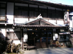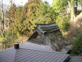左の写真、風情ある茅葺きは「水車の湯」の屋根です。 |