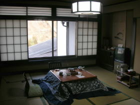 | 今回は「明石」という角部屋。10畳に板の間がついた部屋です。トイレがウオッシュレットなのもうれしい。 |