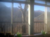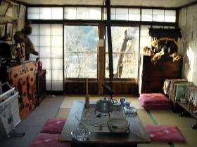 山木館ではムササビを餌付けしていて、夜にはこの部屋からムササビを観察することができます(ムササビが現れると夜10時に各部屋にテレフォンコールで知らせてくれます)。 |