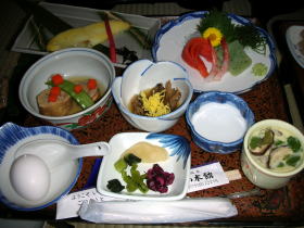 一回出しですが、熱いものは熱いうちに出され、味も量もなかなかのもの。正直、この宿泊料金でこれだけの料理は期待していませんでした。大満足です。 |