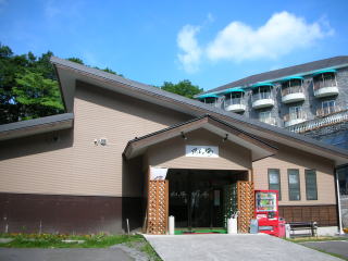 | 絹糸の湯の場所はわかりづらい。我々夫婦は草津方面から行ったのですが、軽井沢方面からにしても草津方面からにしても「北軽井沢交差点」を目指して車を走らせるといいでしょう。軽井沢方面からだと交差点の2キロ程先左手、草津方面からだと2キロ程手前右手に「絹糸の湯 1.2km」の看板があります。うっかりすると見落としてしまいそうですから注意して走行してください。看板に従って国道146号線を折れ、600m程走るとまた看板がありますからそこを右折。大きな建物が見えてきます。ホテルだったのかリゾートマンションだったのか、今は営業していない様子。絹糸の湯はその傍らに申し訳なさそうに佇んでいます。 |