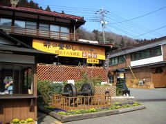 | 霧積を舞台にした、西条八十の『帽子』の詩の一節が暖簾になっています。 |