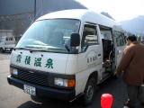 運転手は宿の三代目ご当主。お腰は少々曲がっていますが動きは機敏です。