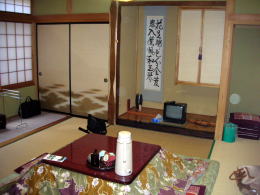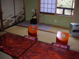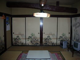 | ここが今回我々が通された部屋。宿泊客が少なかったせいか、201・202の2部屋をぶち抜きにして贅沢に使わせてもらいました。 |