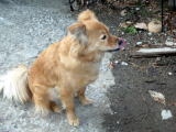 一見優しげな顔をしていますが、実は熊をも追いかけるという勇猛な犬だそうで、撫でようとしたら「う〜っ」と怒られました。 |