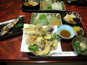 | 山の宿に来て色の変わったマグロの刺身を出されるほど悲しいことはありません。この宿の食事はシンプルではありますが好感が持てます。 |
