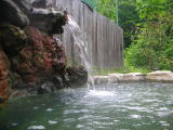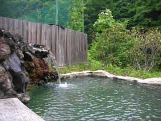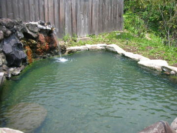 | 小さめとはいっても2人なら十分過ぎる広さ。でも1人1000円は少し高いかなあ。苔が付きやすい泉質とみえて滑りやすいのもちょっと・・・まめに清掃してほしいもの。それはともかくとして、源泉がドバドバかけ流されていて実に気持ちがいい。上着が必要なくらい肌寒い日でしたが、よく温まるいい湯でした。 |