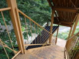目指す露天風呂は黄色い鉄階段を下った渓流沿いにあります。 |