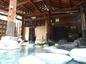 | それにしてもいい湯です。体が喜んでいる感じ・・・熱めと温め、2つの湯舟を行ったり来たり・・・いつまでも入っていたい、糸引き納豆のような温泉です。 |