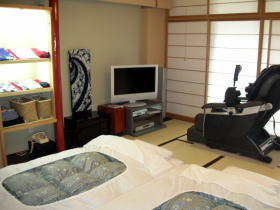 寝室には最新のマッサージチェアと32インチプラズマ液晶テレビもあります。 |
