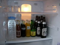 部屋の冷蔵庫内の飲み物はすべて飲み放題。つまり宿泊料金の中に含まれているわけですから、飲まなきゃ損です。 |