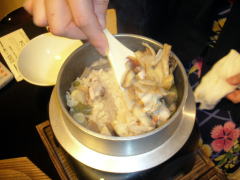 キジ雑炊、しいたけ&しめじ焼き、