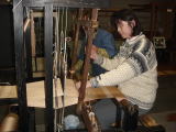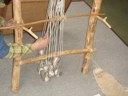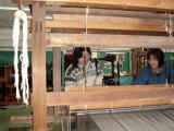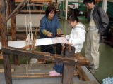 かりで織ります。体験させてもらいました。 |